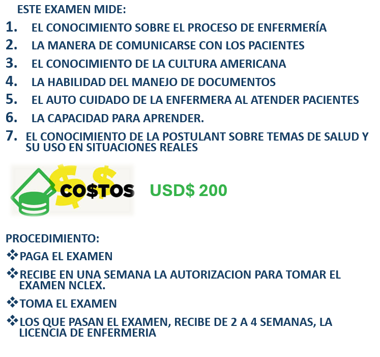 - CUANDO APRUEBAS EL EXAMEN NCLEX OBTIENES LA LICENCIA DE LA LICENCIATURA EN ENFERMERIA, LO QUE LE PERMITE TRABAJAR LEGALMENTE LA PROFESION DE ENFERMERIA EN LOS ESTADOS UNDOS.